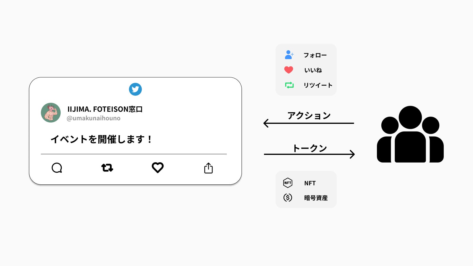 - 運営の告知などを拡散、フォローした人に対して、NFTや暗号資産を送るキャンペーン施策
