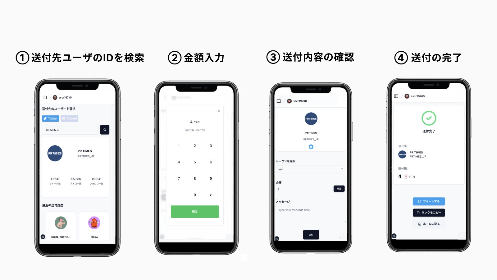 - SNSのID宛のトークンの送付